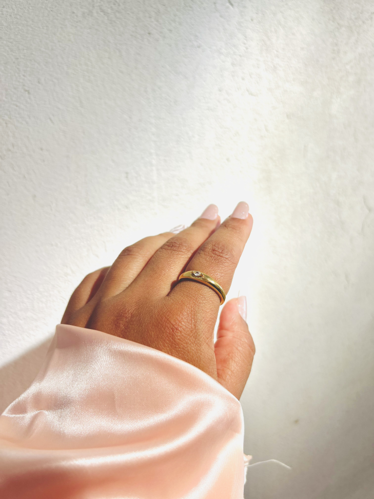 Anel Baguete Cravejado Banhado a Ouro 18K - Joia Moderna de Brilho Trilógico
